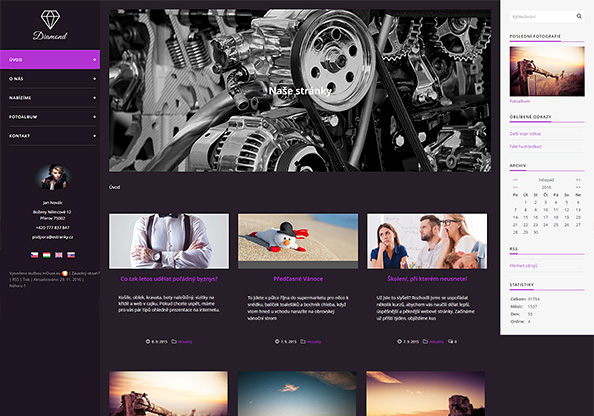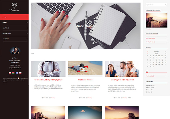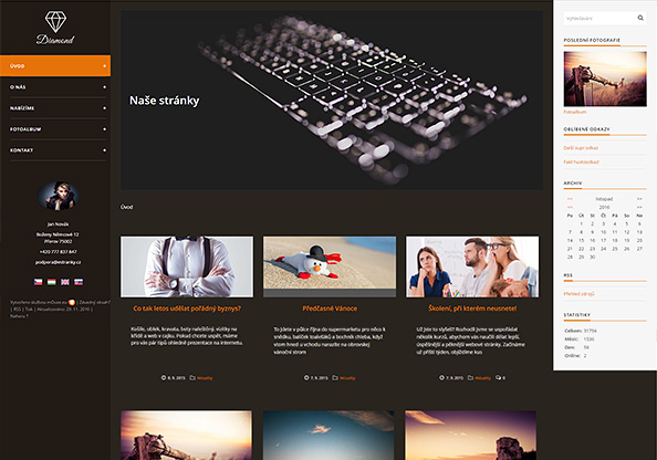 Nezapomínejte, že vzhled stránek můžete ve svém ovládacím centru libovolně přepínat, zkoušet, aniž byste přišli o obsah stránek. A abychom vám pomohli s rozhodováním, jestli novou šablonu vyzkoušet, připravili jsme ukázkovou stránku www.diamant.estranky.cz, kde si můžete nasazenou šablonu prohlédnout.